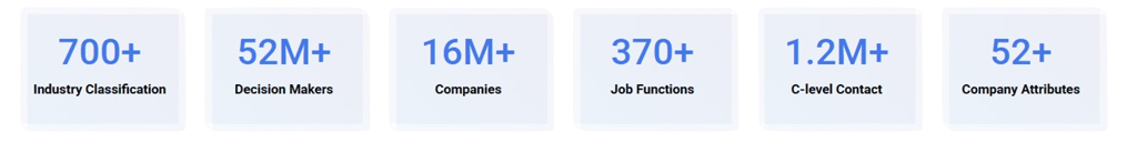 Our vision is to be the go-to source for businesses seeking reliable, compliant, and ready-to-deploy B2B data. We aim to help organizations worldwide accelerate sales cycles, reduce marketing friction, and improve ROI by delivering the highest quality contact and company insights.