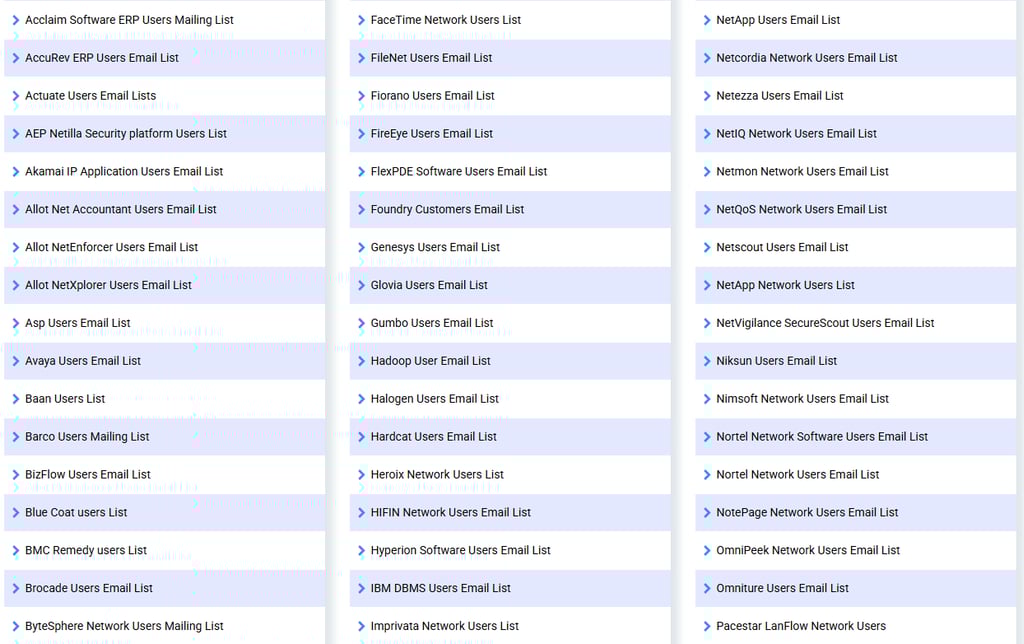 Categories Present In Our Technology Users Email Database