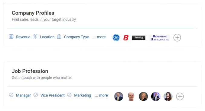 🔹Target your accounts by Job Role, Firmographics, Business Type, Sales Volume.